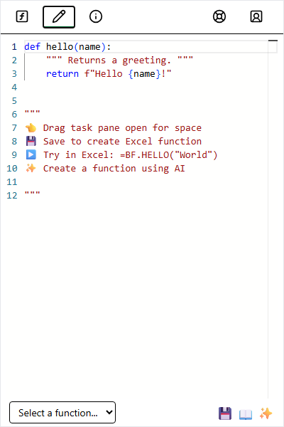 - Open the Editor tab (✏️) to write your first function