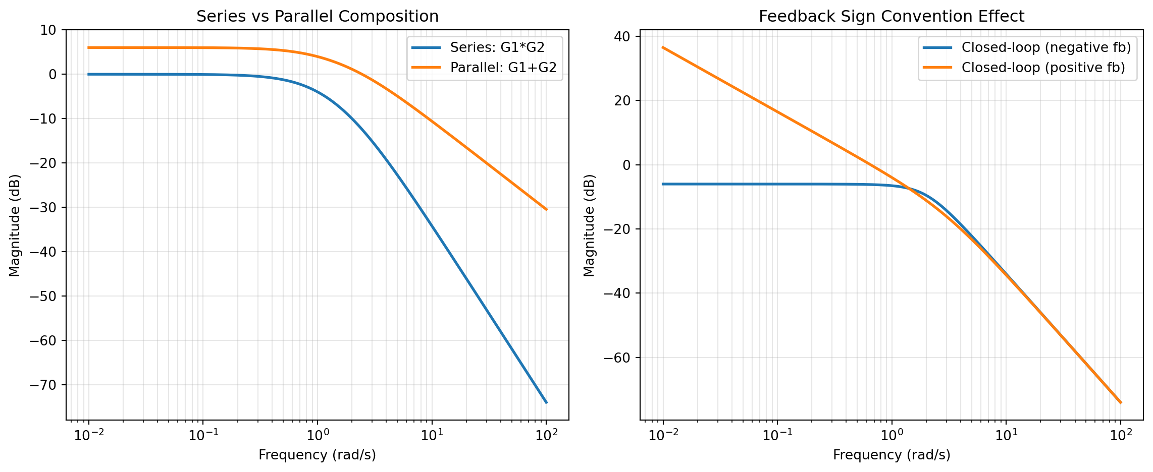 | SERIES | Cascaded blocks | G_1G_2 | Controller × plant, filter chain | Mirrors real signal flow in staged dynamics | Reversing intended block order in interpretation |