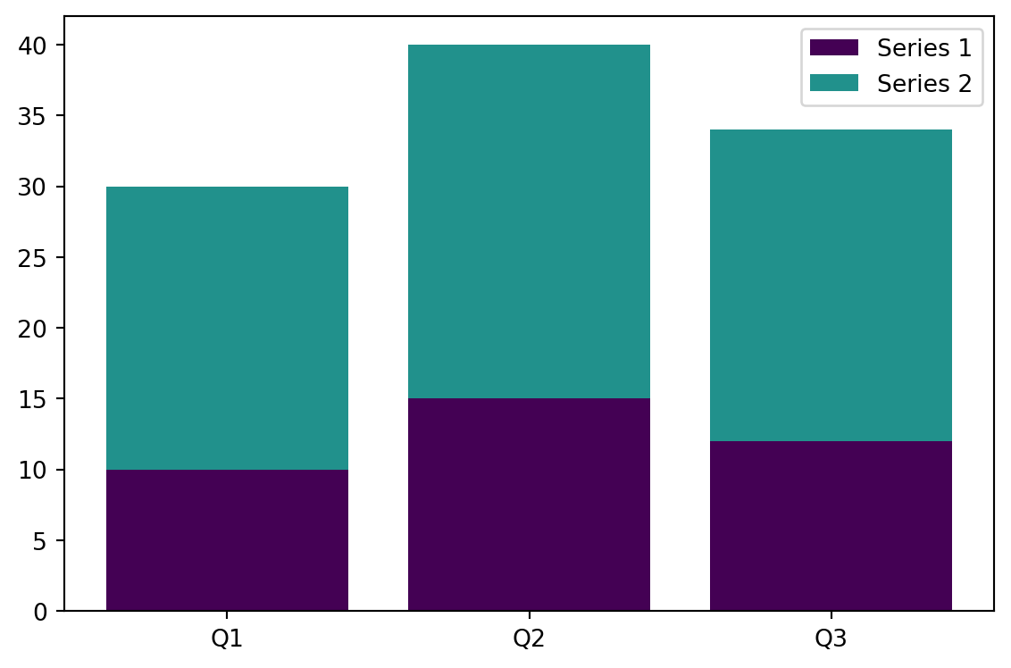 ax.bar(x, s, bottom=bottom, label=f"Series {i+1}", color=colors[i])